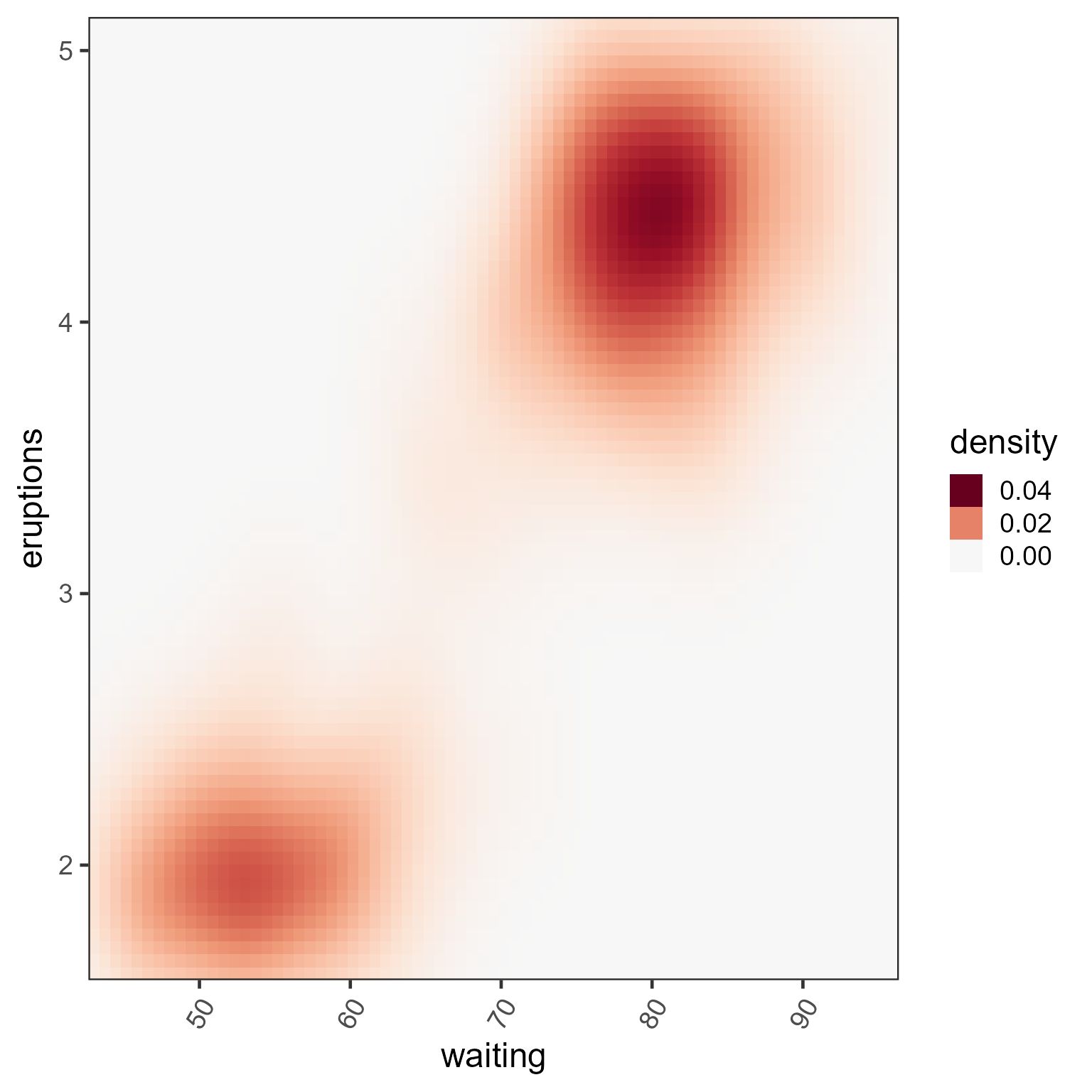 ggplot2::aes(waiting, eruptions, fill=density)) +